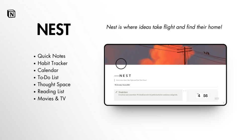 "NEST" represents a cosy, and welcoming space where you take notes, declutter your mind and build lasting habits!